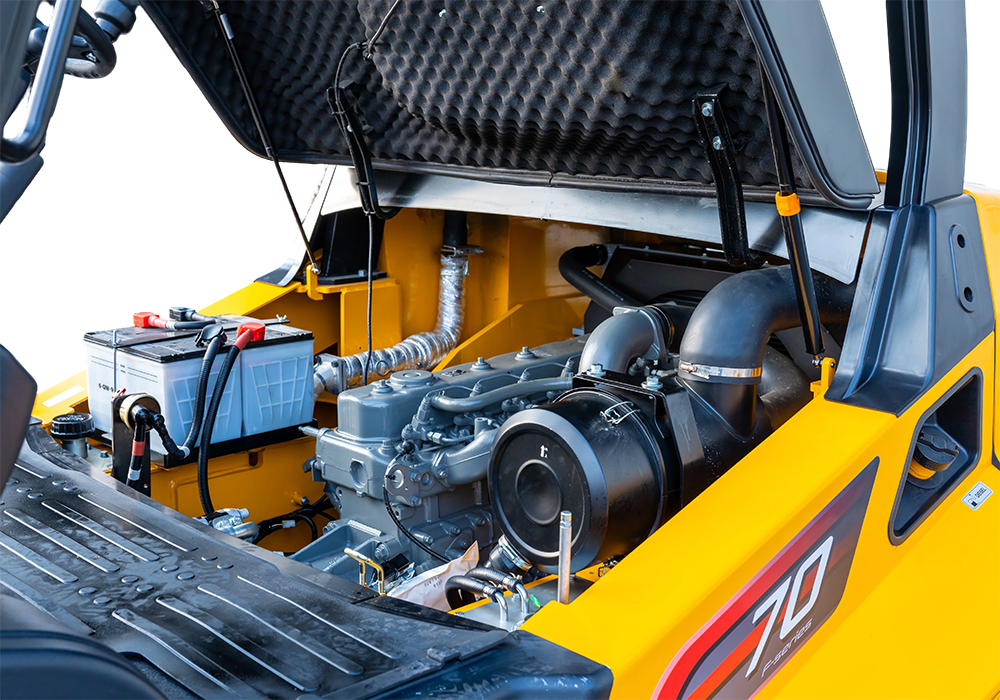 ●Большой открывающийся капот двигателя со съемными напольными пластинами для удобства обслуживания.