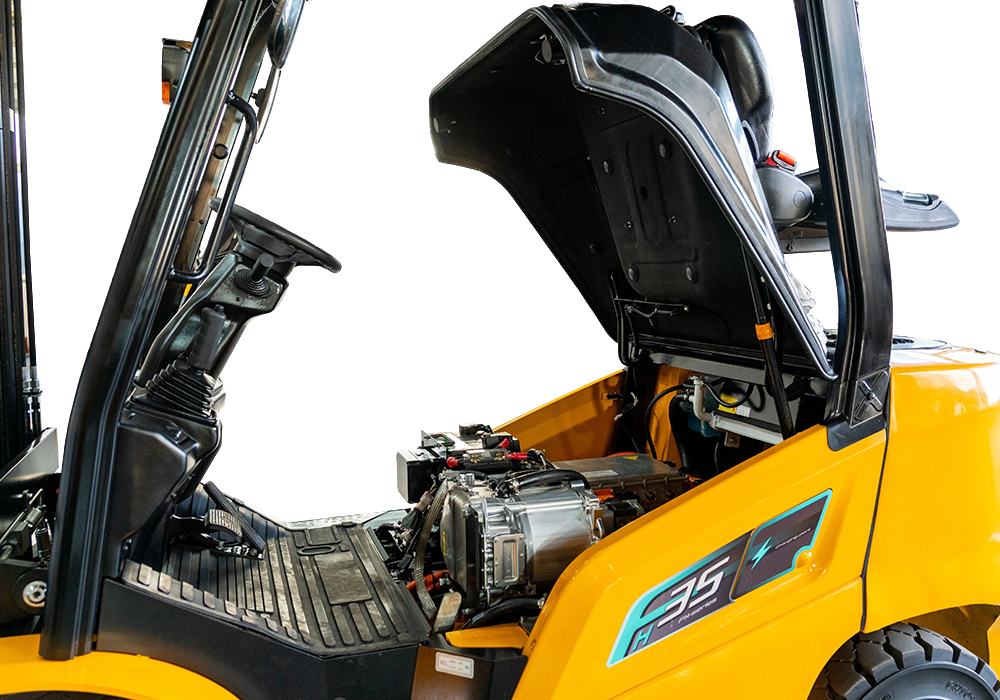 ● Автомобильный PMSM обеспечивает высокую эффективность и крутящий момент — превосходит электрические погрузчики, сопоставимый с погрузчиками IC или превосходящий их.