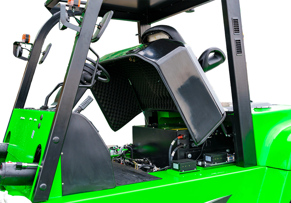 ● Благодаря защите CAN bus и BMS погрузчик находится под постоянным контролем, а увеличенный угол открытия капота обеспечивает быстрый и легкий доступ для технического обслуживания.